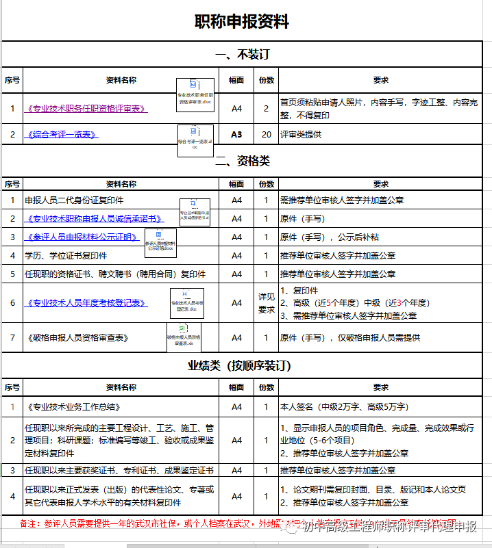 高级职称申报需要的资料很繁琐,武汉市的如下